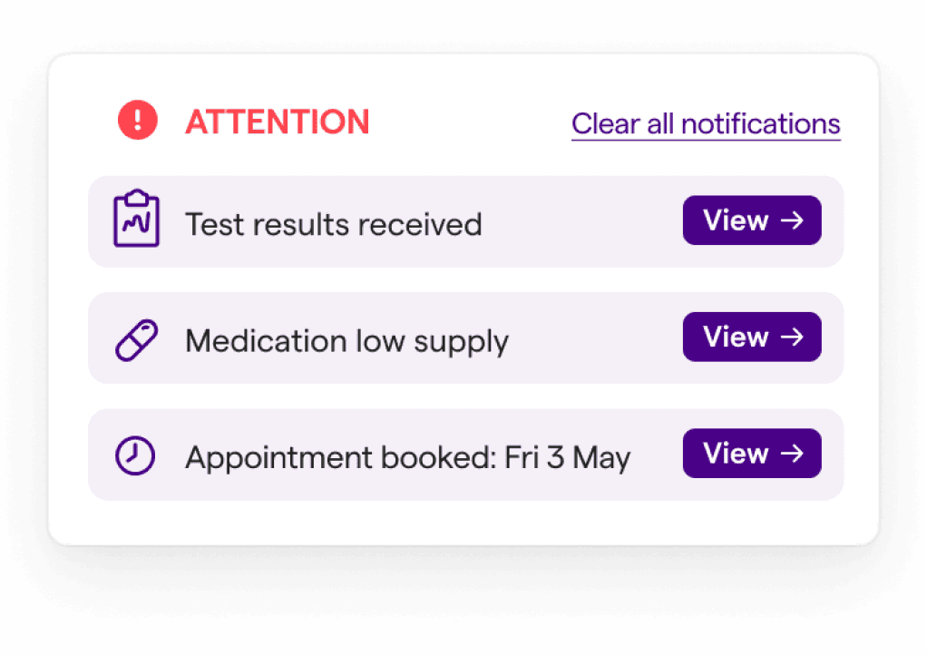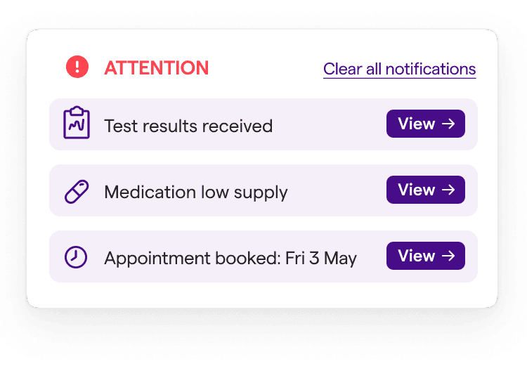 Contains all of your health records; like test results, screenings, immunisations and family health history, in one easy to use and accessible section within the portal.